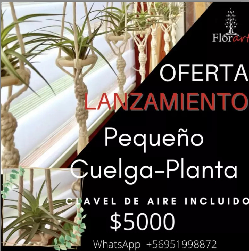 Cuelga planta fabricado en macrame con una clavel de aire.