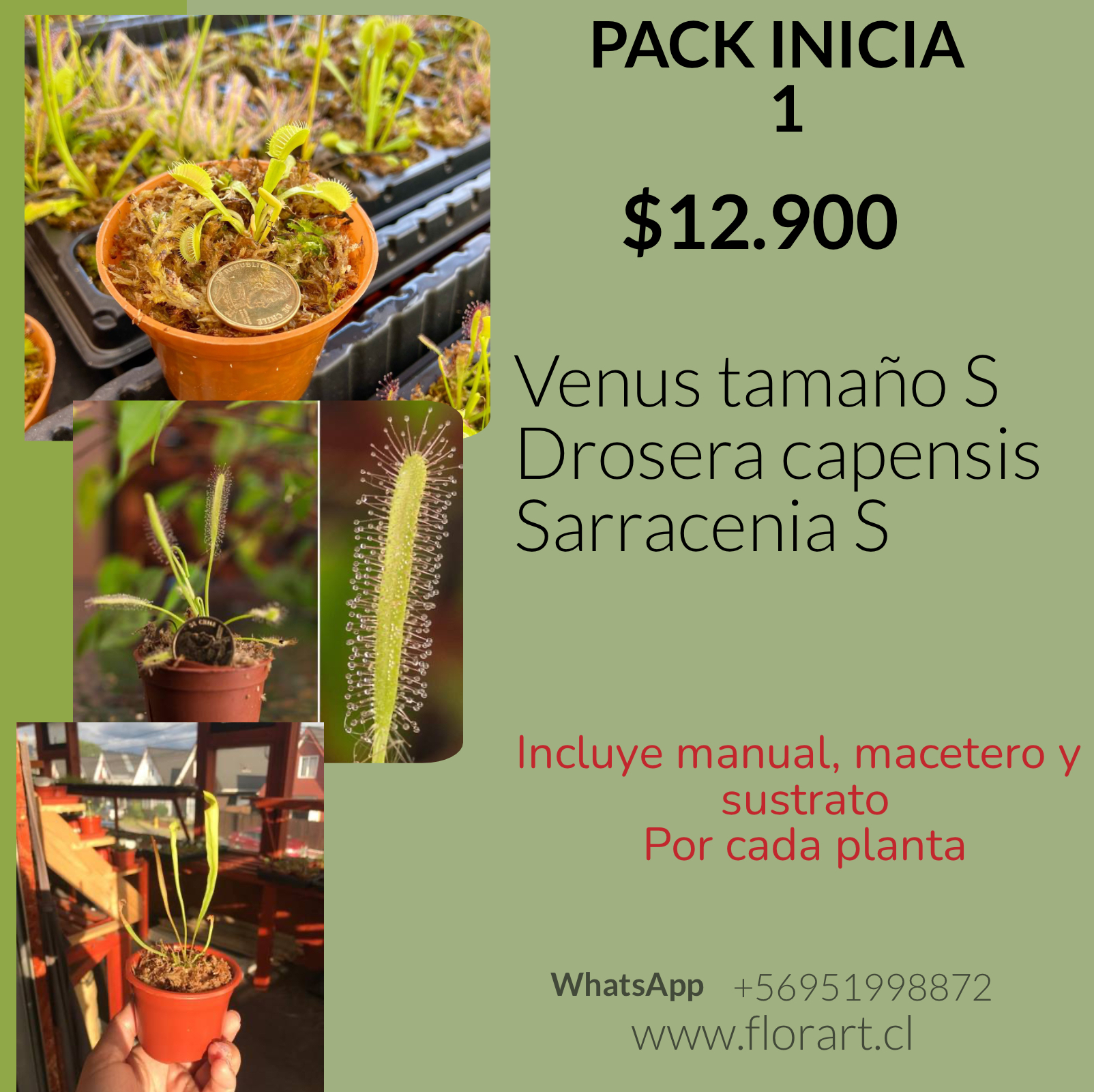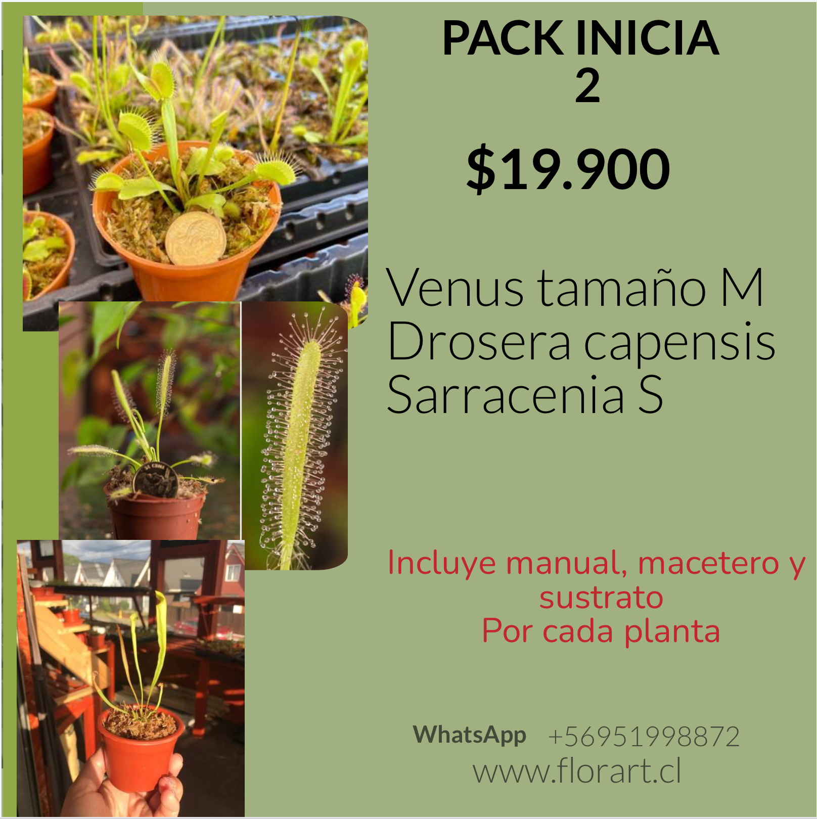 Venus M, drosera capensis, sarracenia S, incluye sustrato , maceteros y manual.