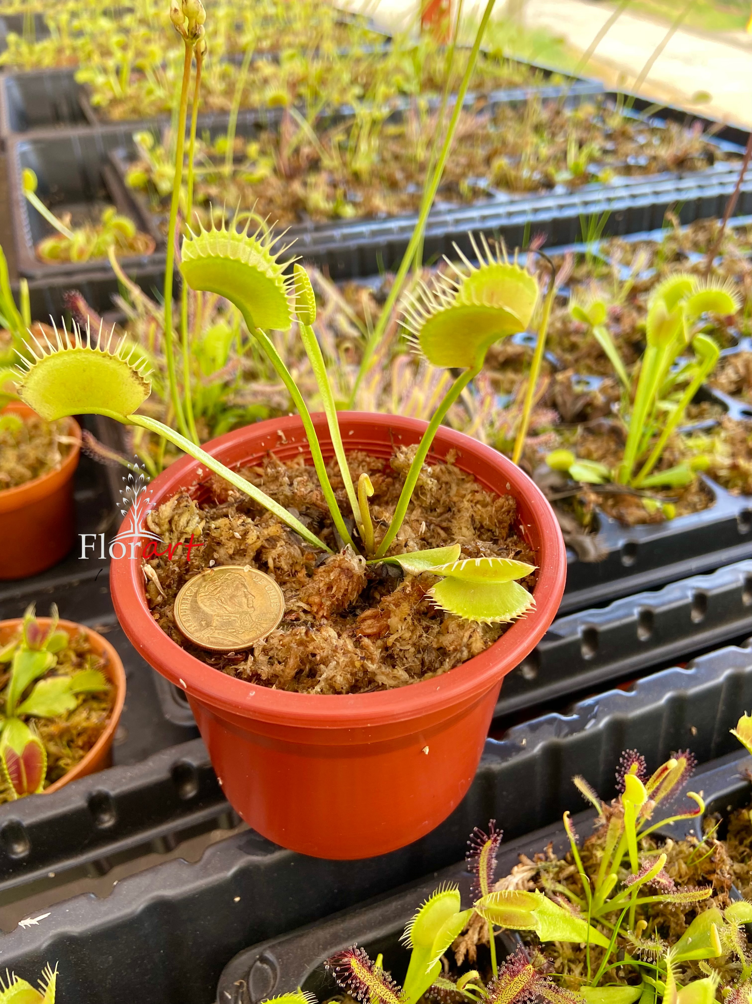 Venus atrapamosca, entre 3 a 5 cm, de aproximado 2 años, en el envío va incluido el macetero, el sustrato especial para este tipo de plantas e instructivo.